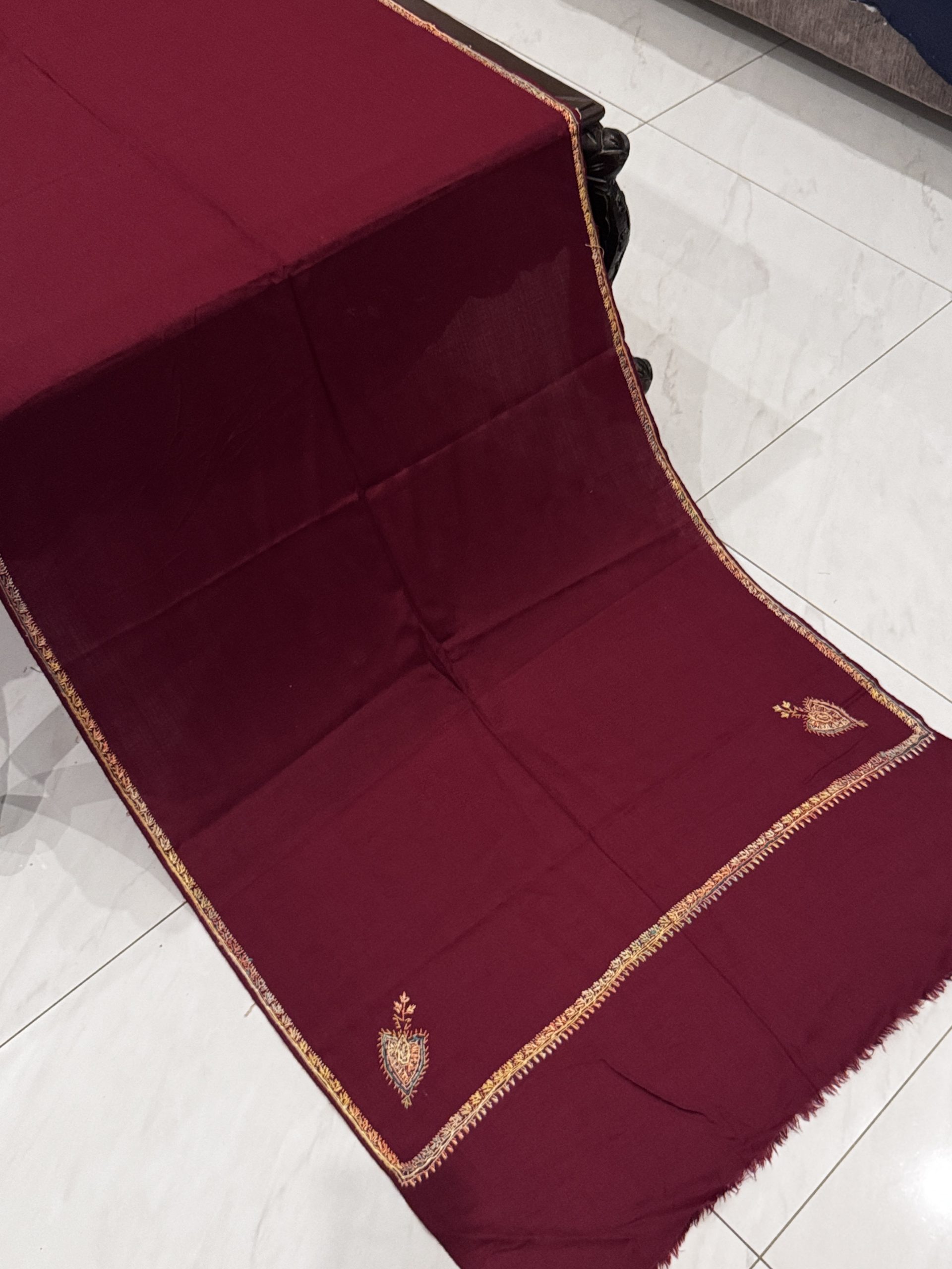 Gulbahar – Maroon Pashmina Stole with Kingri Border Embroidery (28×80 inches)