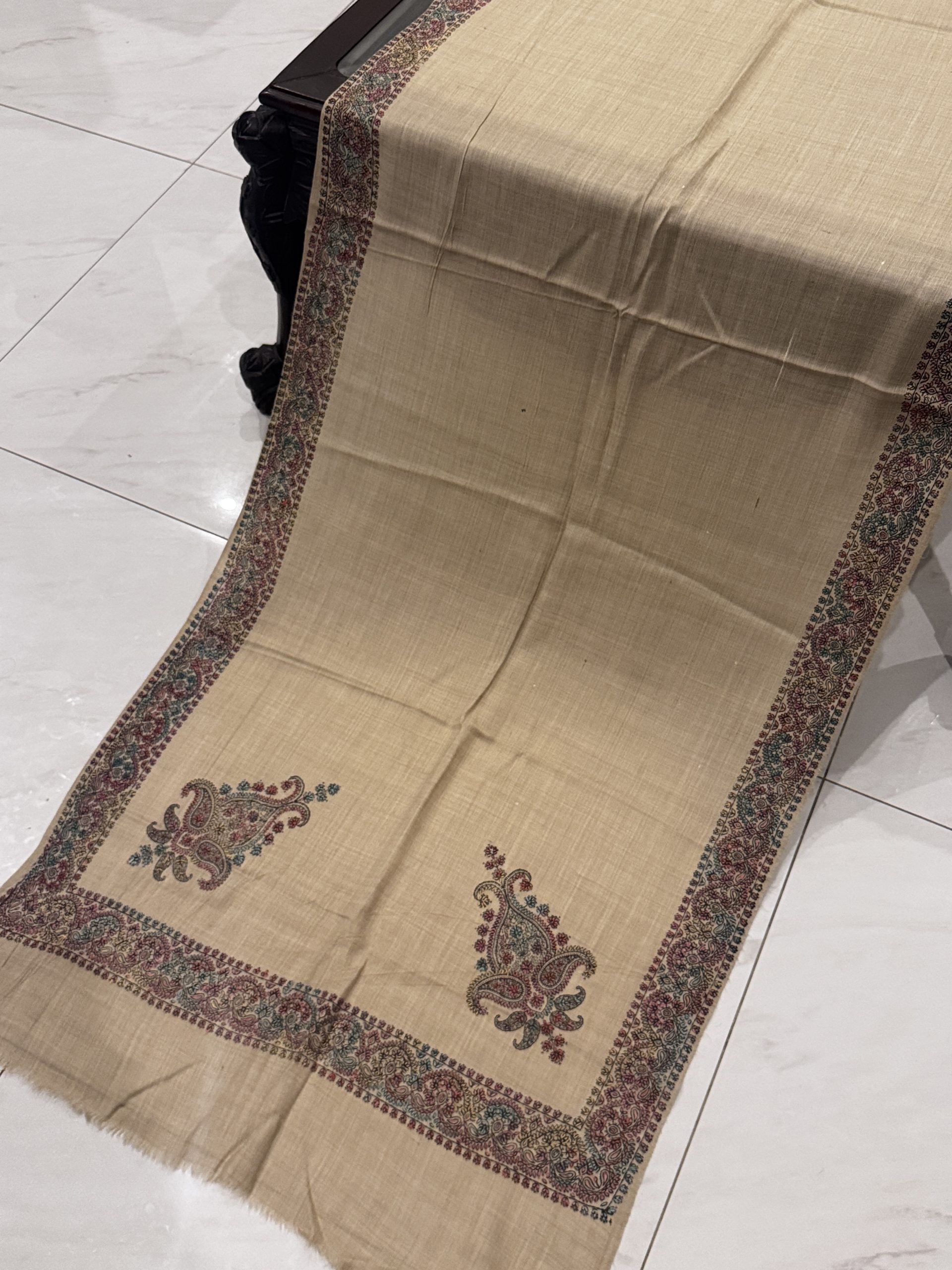 Hoor – Light Beige Pashmina Stole with Classic Border Embroidery (28×80 inches)