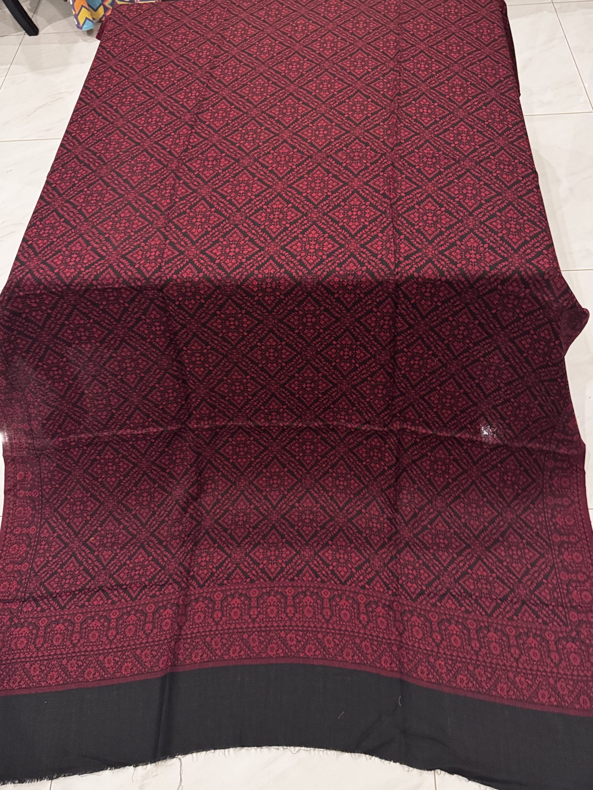 Inaya – Kani Pashmina Shawl with Black & Red Box Patterns (2.5 Yards)
