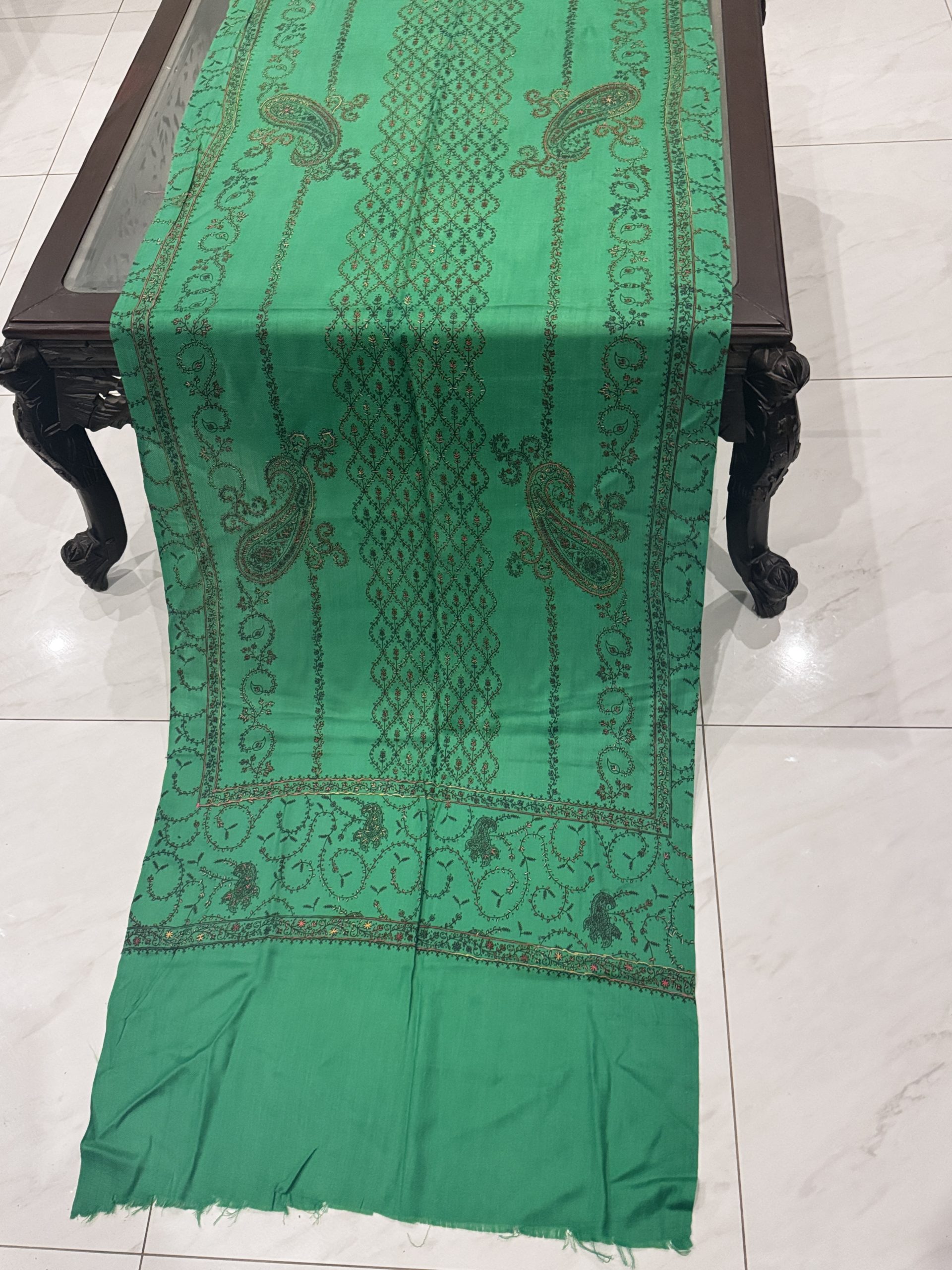 Liyana – Emerald Green Pashmina Stole with Unique Embroidery (28×80 inches)