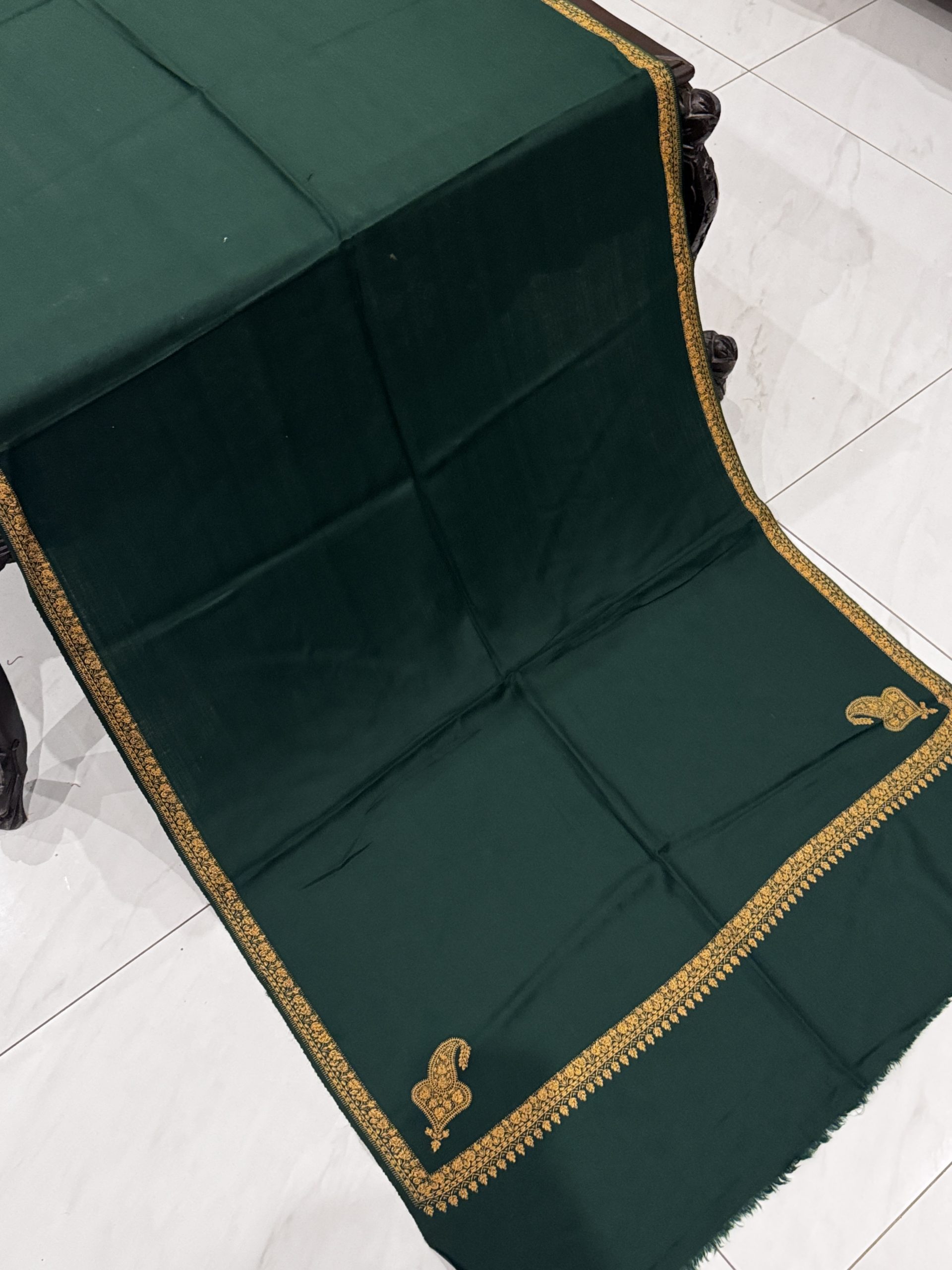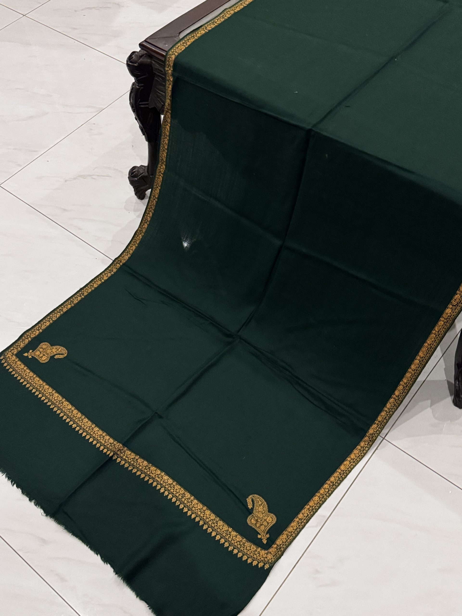 Meherun – Bottle Green Pashmina Stole with Kingri Border Embroidery (28×80 inches)