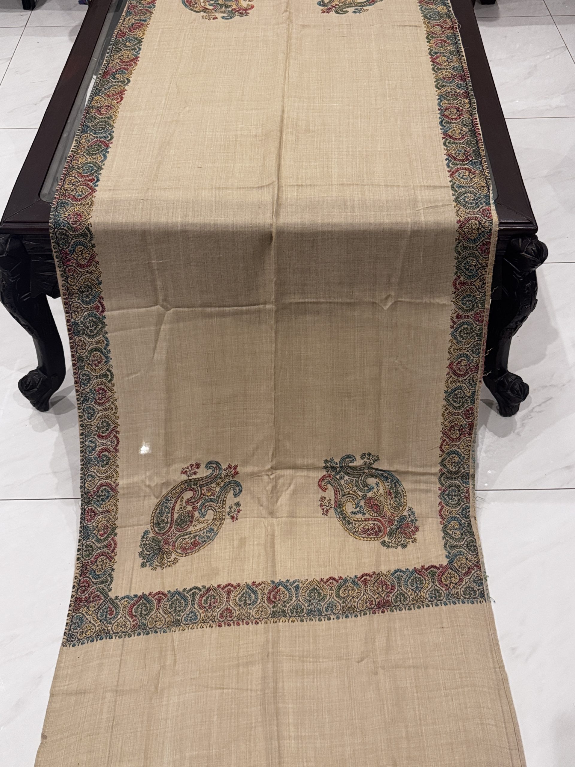 Nawal – Light Beige Pashmina Stole with Classic Border Embroidery (28×80 inches)