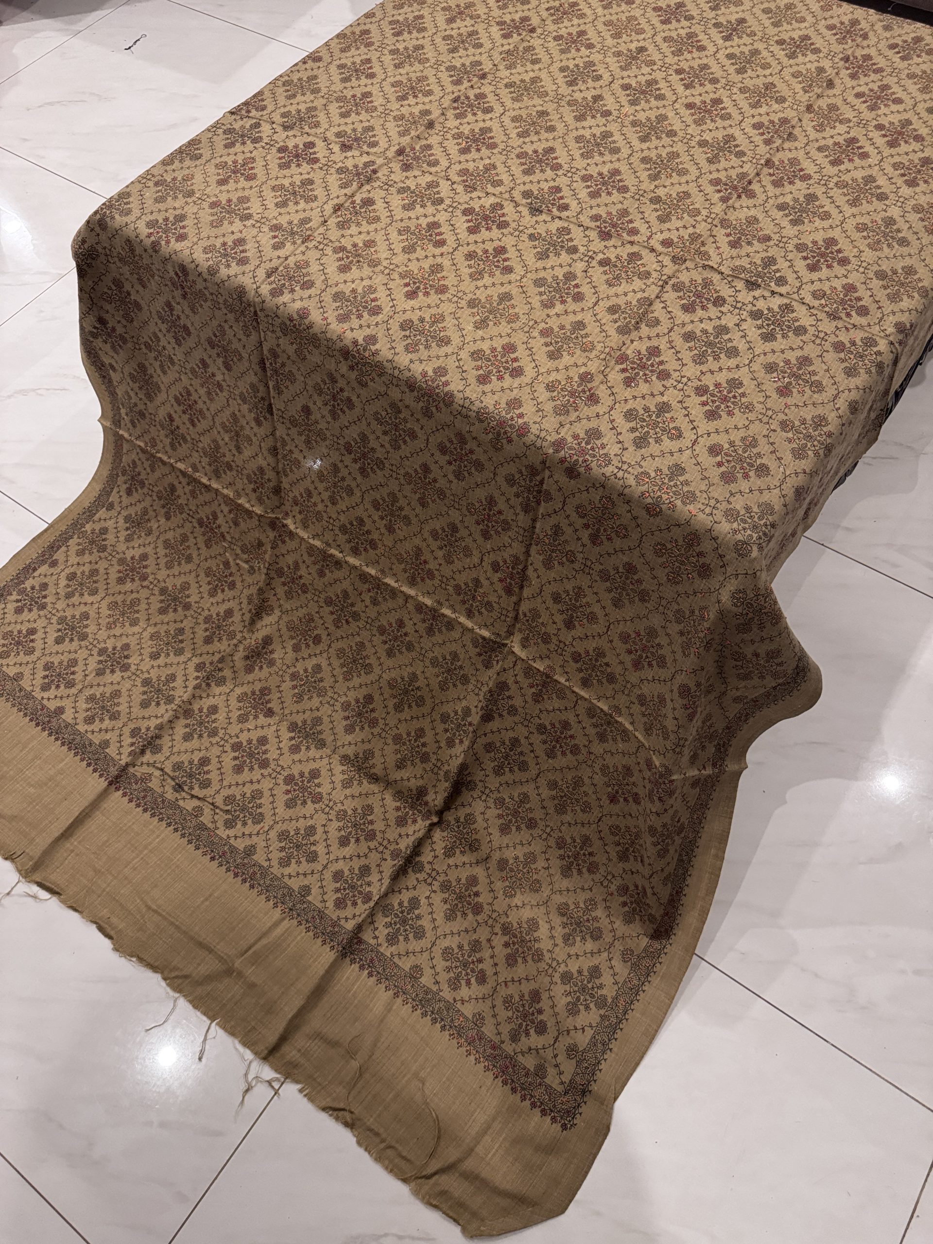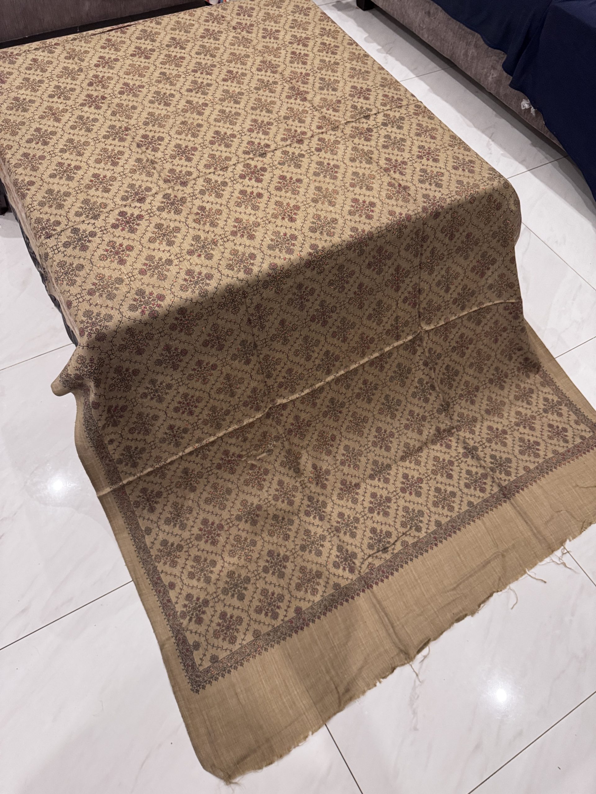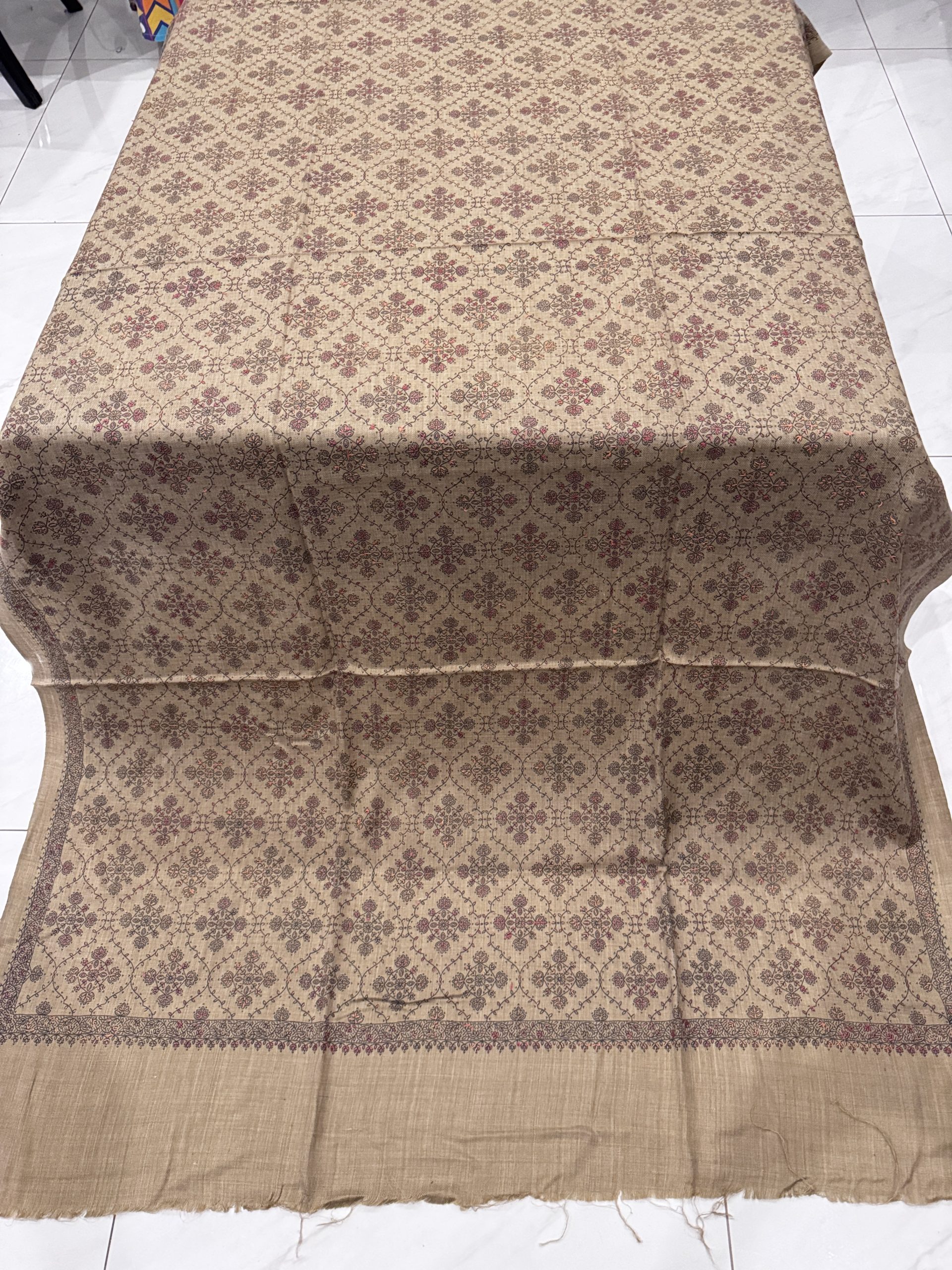 Nayrah – Sandy Beige Embroidered Pashmina Shawl (2.5 Yards)