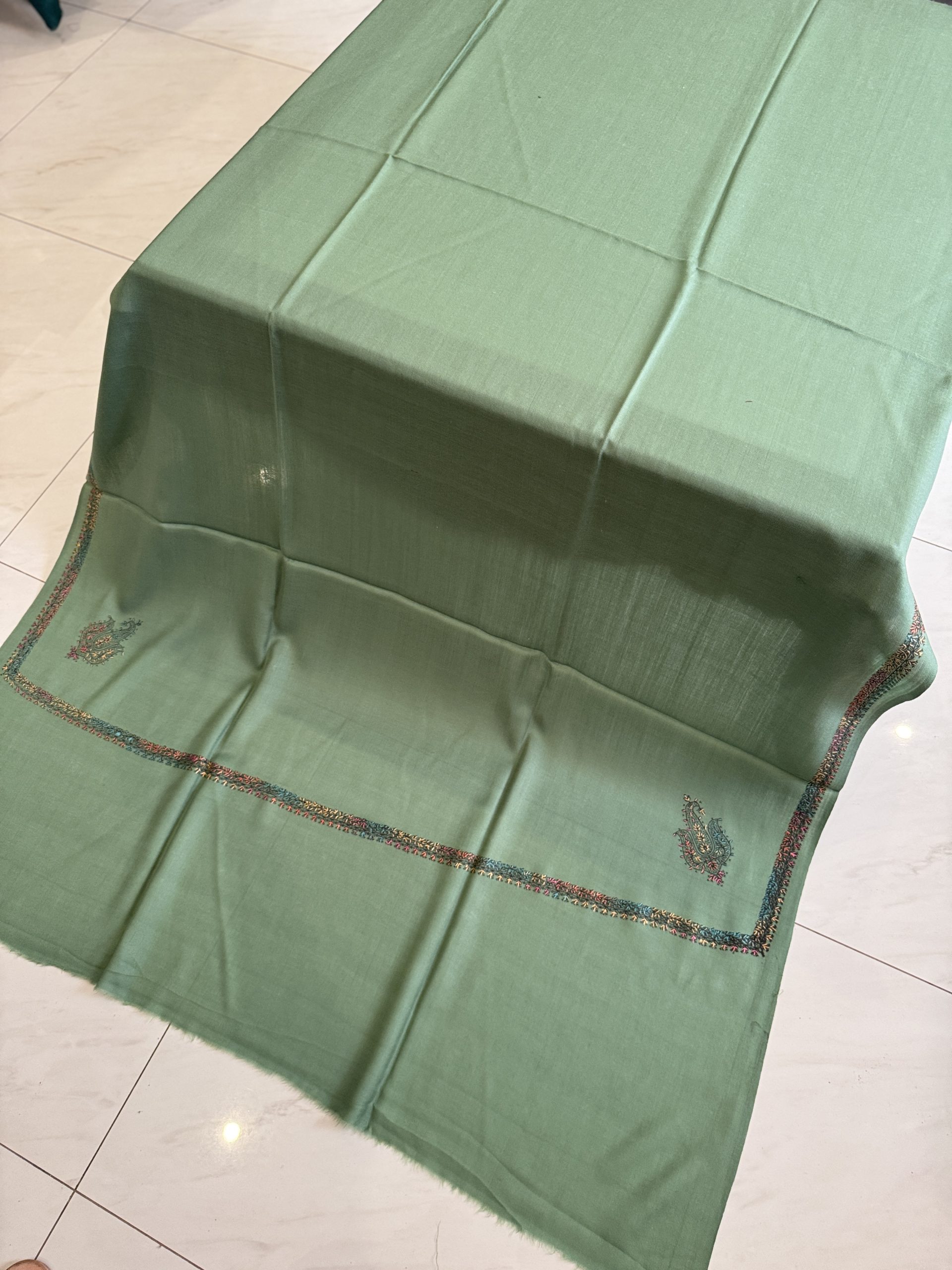 Pistachio Green Kingri Style Border Embroidered Shawl (2.5 yards)