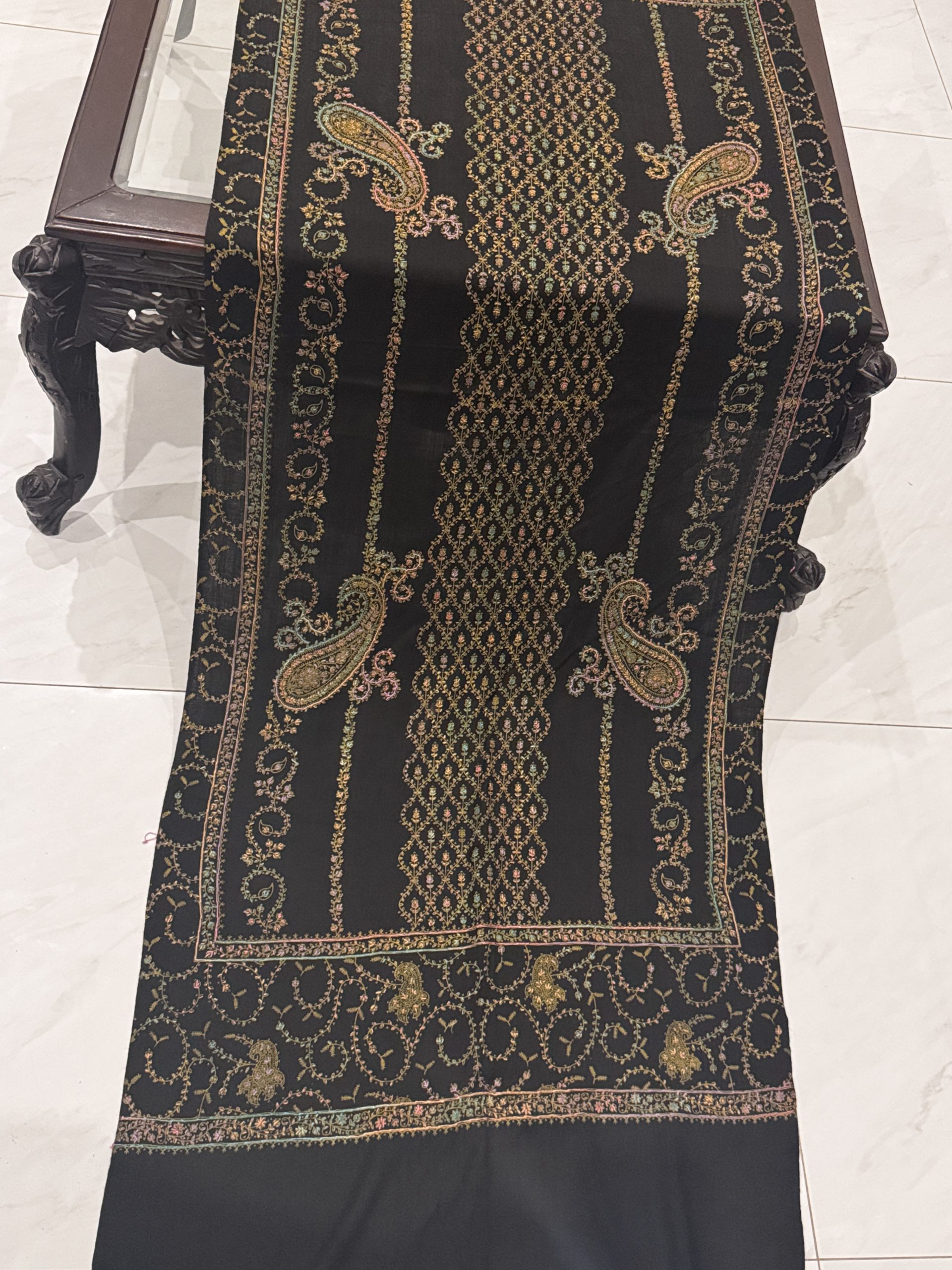 Zareen – Black Pashmina Stole with Unique Embroidery (28×80 inches)