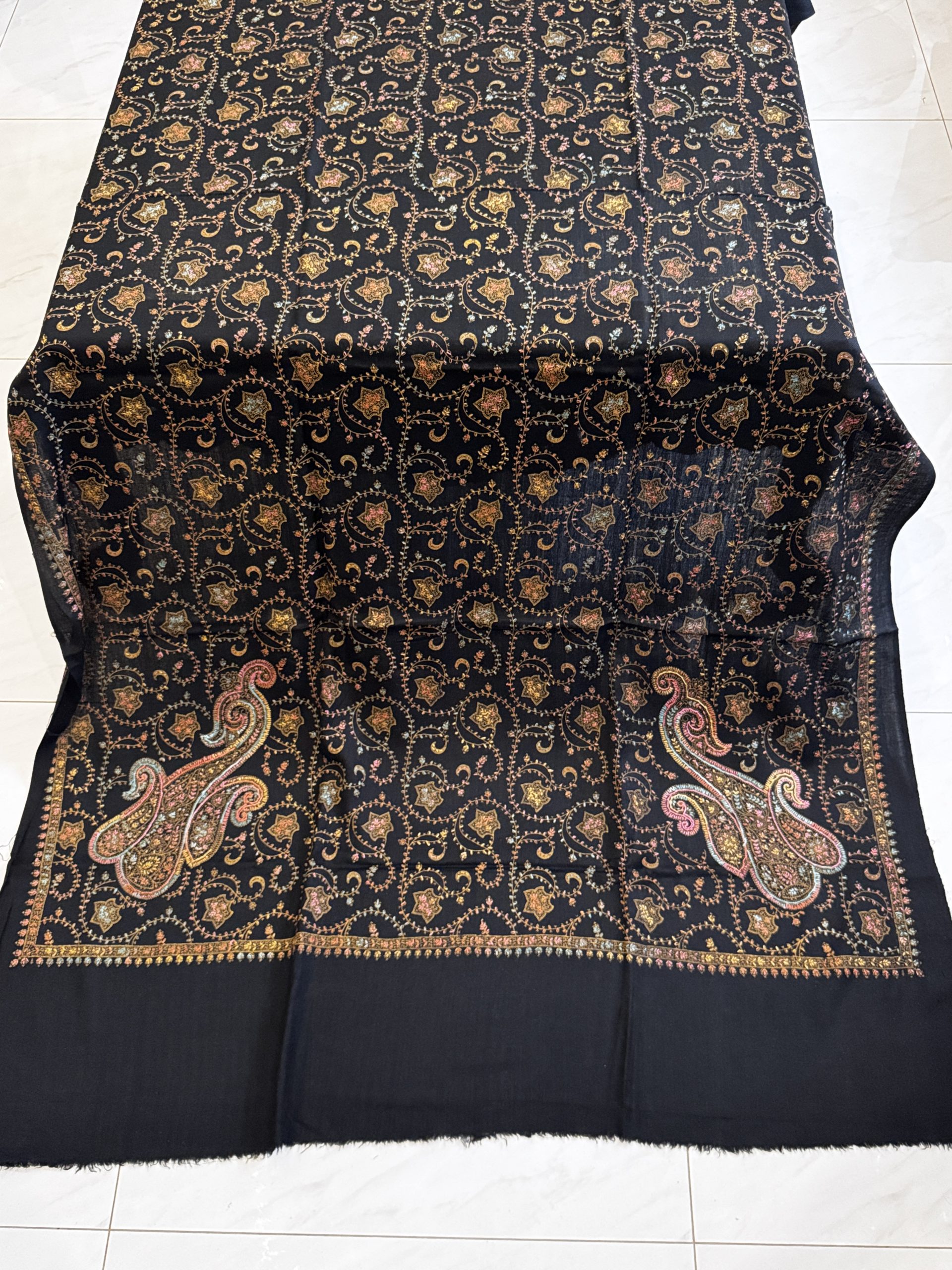 Ziya – Fully Embroidered Pashmina Shawl in Black (2.5 Yards)